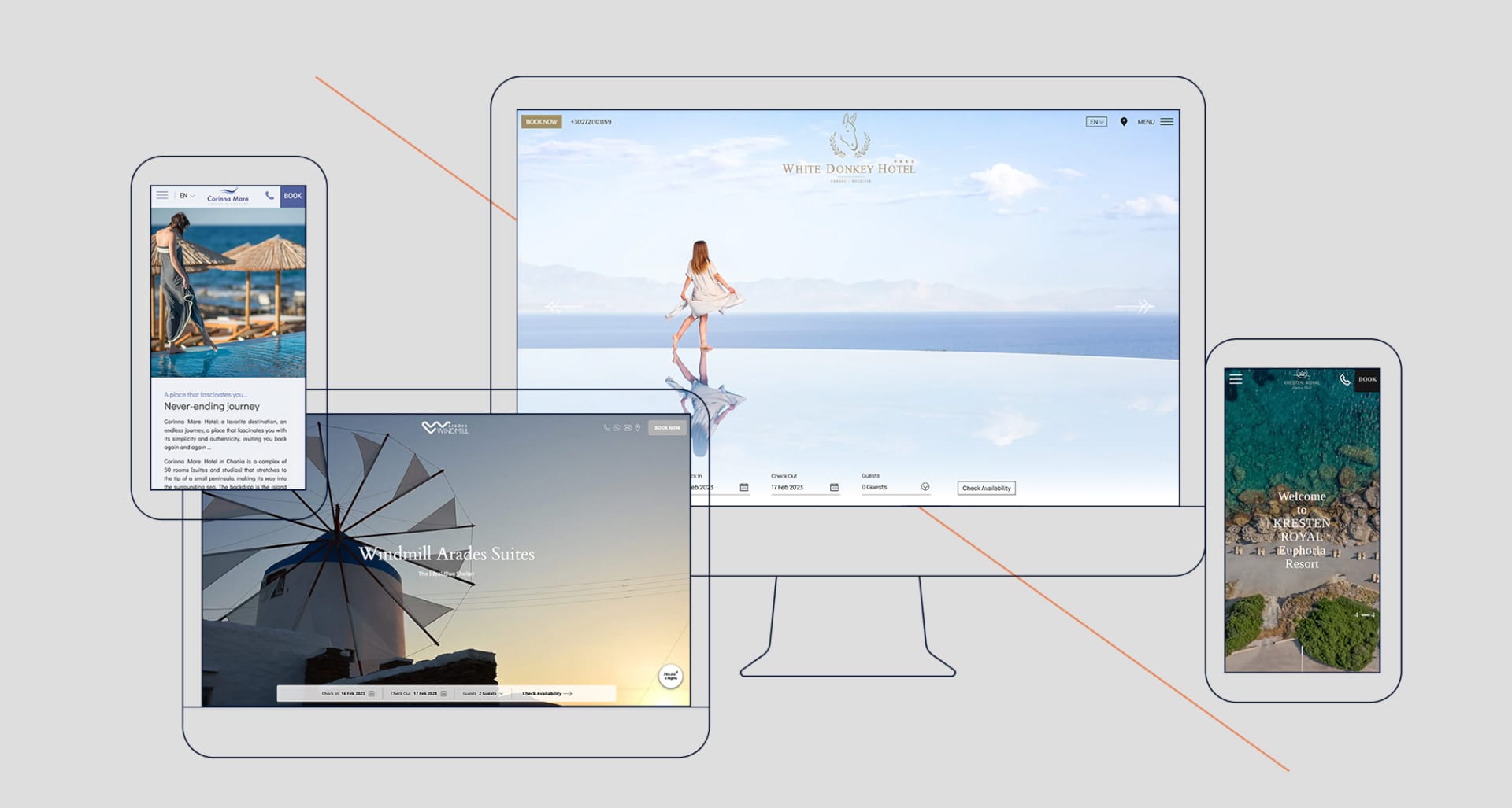 Using Pebble Hotel Canvas's sophisticated design and web effects, Hotelwize's creation for Kresten Royal Euphoria Resort's new hotel website underlines the luxury characteristics of the property and presents the wide range of facilities and services that the resort offers to its guests. Through the canvas's mobile-first design, the challenging goal of showcasing massive information in a clean and easy-to-navigate layout for any device has been flawlessly achieved. Likewise, the addition of dedicated pages, contact forms and distinct Call to Action buttons, advances the hotel's sales not only for its accommodation offering but for its separate services as well (restaurants, wellness, events, etc).