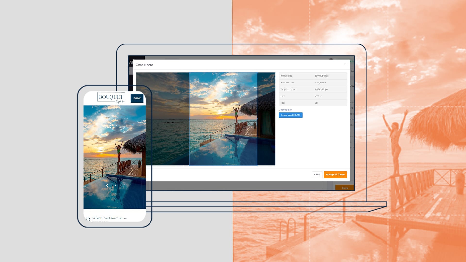 Recognizing the importance of a diverse device experience, Hotelwize allows seamless image management for both desktop and mobile versions. Choose the same image or opt for different ones for each version. Customize cropping to ensure optimal display on every device. Effortless adjustments, followed by Save and Publish clicks, guarantee your website looks stunning across various screens.