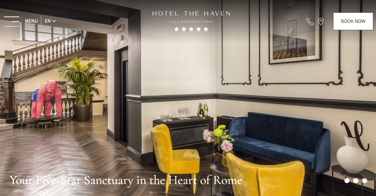 The streamlined navigation, coupled with the luxurious and inviting ambiance, elevates user experience and amplifies the website's effectiveness in terms of both sales and user-friendliness. Distinct design sections for different information categories allow you to highlight preferred hotel features and spotlight the experiences guests can expect during their stay. Direct links from the homepage to dedicated internal pages for each experience enhance visibility and drive conversions.