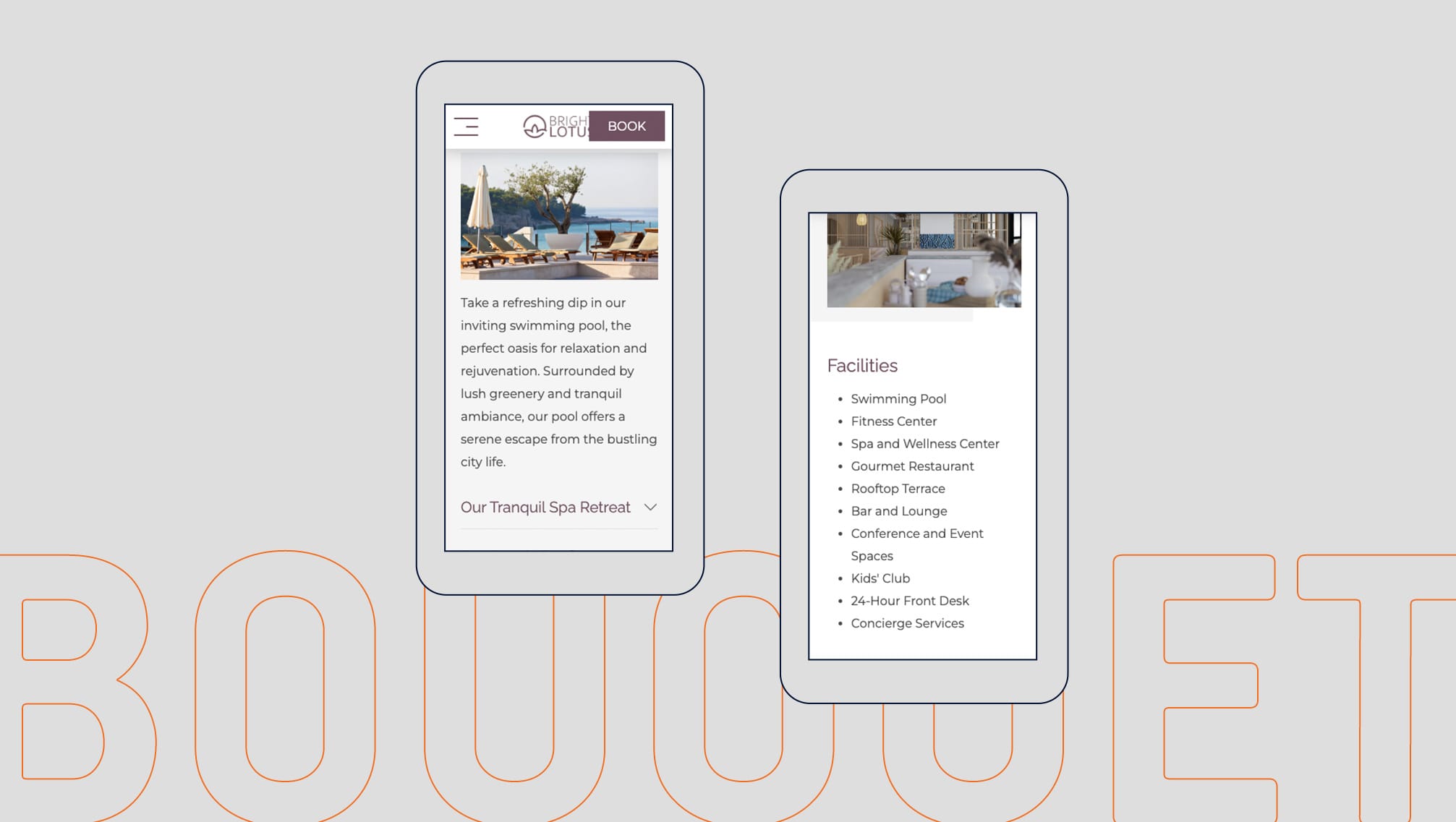 Bright Lotus Canvas prioritizes showcasing the guest experience within your property. Employing a variety of image sizes, elegant fonts, and tasteful color schemes, the design minimizes distractions while maximizing communication.