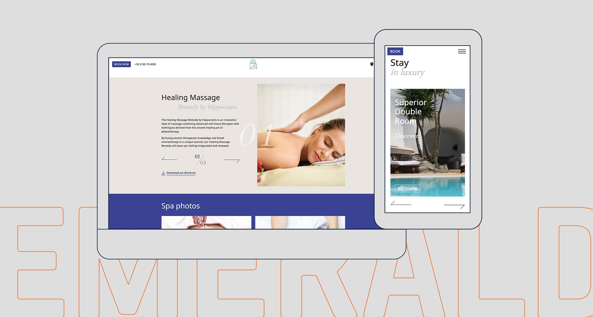 Combining a clear navigation structure, highlighted design features, and dedicated internal pages, the Emerald Hotel Canvas promotes every service and experience provided by the hotel or its affiliates in the most informative and efficient way.