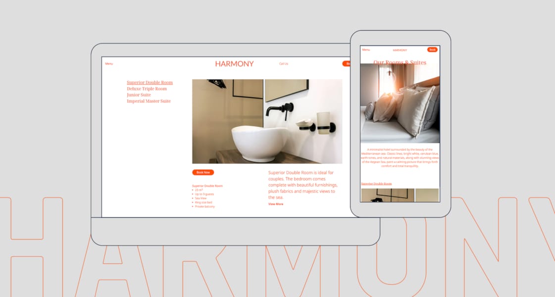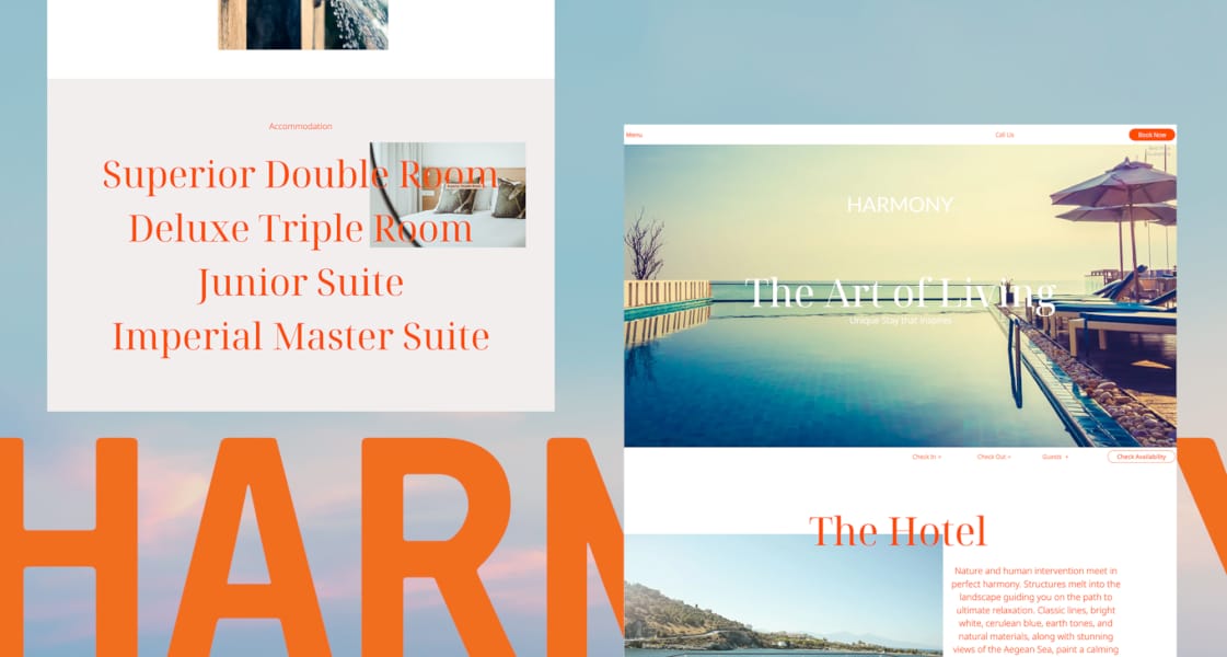 The Harmony Canvas is not only visually stunning but also highly functional. The canvas includes all the essential features of the Hotelwize Platform, such as an intuitive and user-friendly interface, dedicated pages for the hotel's services, amenities, and rooms, as well as an interactive map to showcase the hotel's location and nearby attractions.